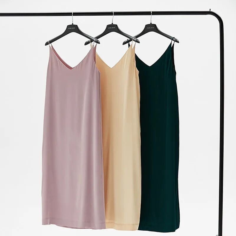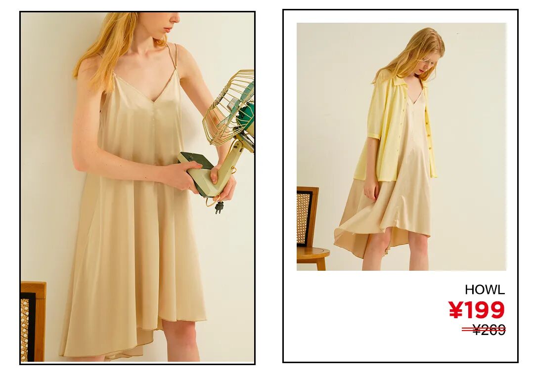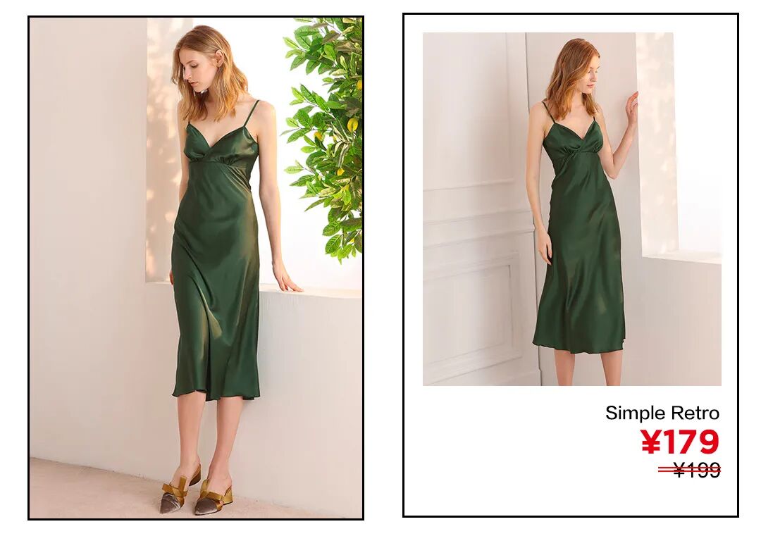 其实缎面吊带裙的另一个优势就是不论是从设计的露肤度还是材质本身的质感来说,它都很“降温”。A字裙摆的设计更显舒适度,在室内通勤时,增添一件薄针织衫就能拗出又一个时髦Look。点击图片直接购买