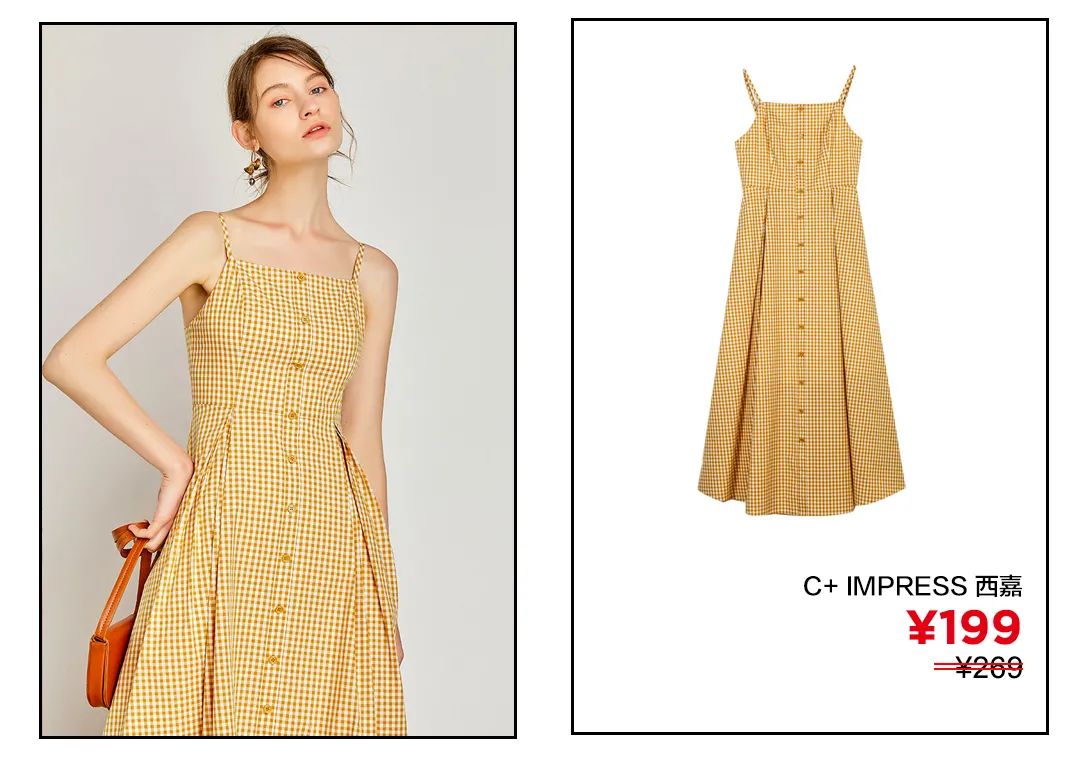 法式维希格纹的纽扣吊带裙,不管是黄白格纹还是蓝白格纹,都是一眼就让人喜欢的存在。配上一双小白鞋和一只竹篮包,应该就可以骑着自行车去度过一个浪漫自然的周末下午啦。点击图片直接购买