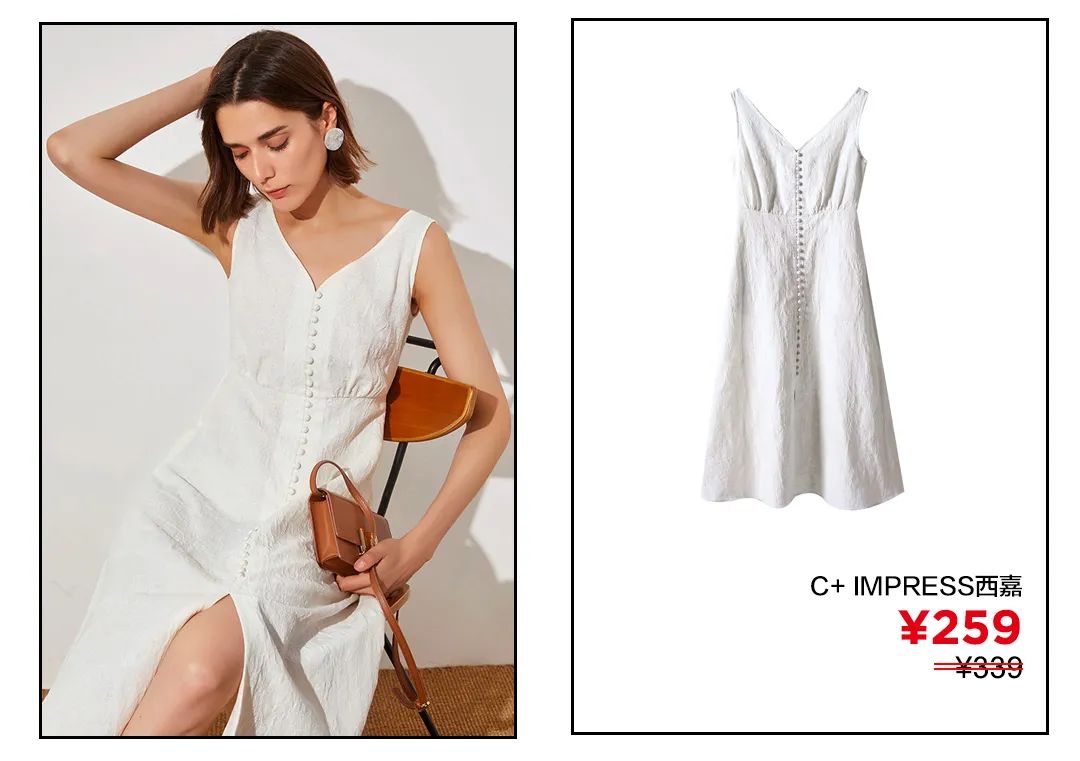 纽扣吊带裙,乍一听很是平平无奇的样子。但不管是小妹妹还是小姐姐,不管是古灵精怪的少女,还是多年来的街拍女王,简洁雅致的纽扣吊带裙都是她们的夏日选择之一。米白色的简约内敛,棉麻材质的自然褶皱,和纽扣元素和收腰设计的自然结合,C+ IMPRESS这条白裙怎么看都是温柔又高级。“顾佳”们,请不要错过!点击图片直接购买