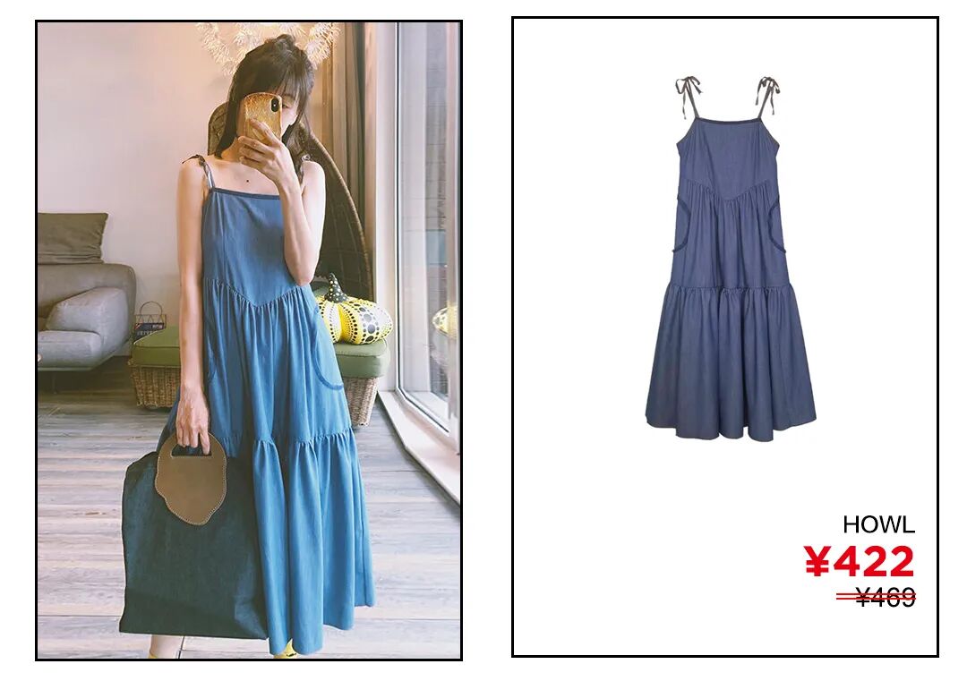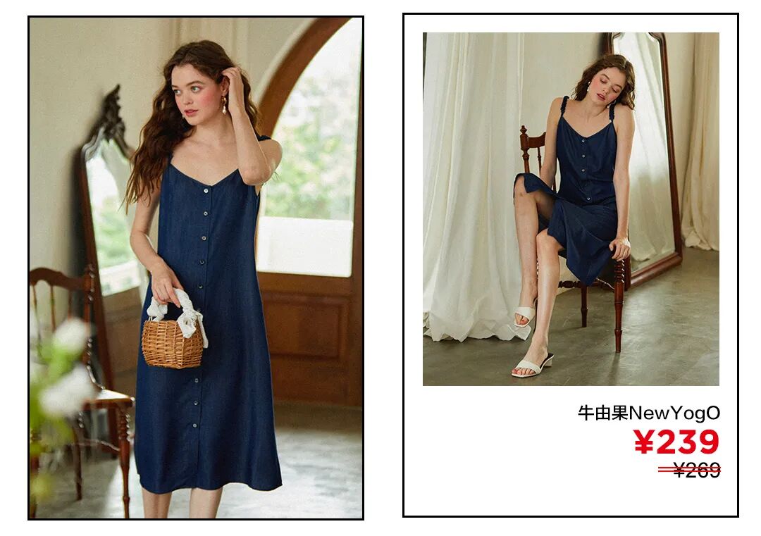 而深浅牛仔蓝色的这两款吊带裙,深色更优雅,浅色更青春,没有谁比谁更好之分,只有更适合个人的差别。所以,看上去简单的纽扣装饰也可以是细节加分项,能为你的日常造型加不少分呢。点击图片直接购买