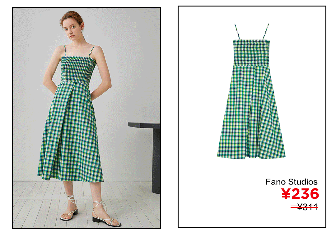 想在夏天留住一点清新感的话,肯定少不了森系的绿色。穿上Fano Studio这条格纹吊带裙的话,夏夜微风都会多眷顾你一些吧,多给你带来一点清凉。裙摆飘飘,够美好的~点击图片直接购买