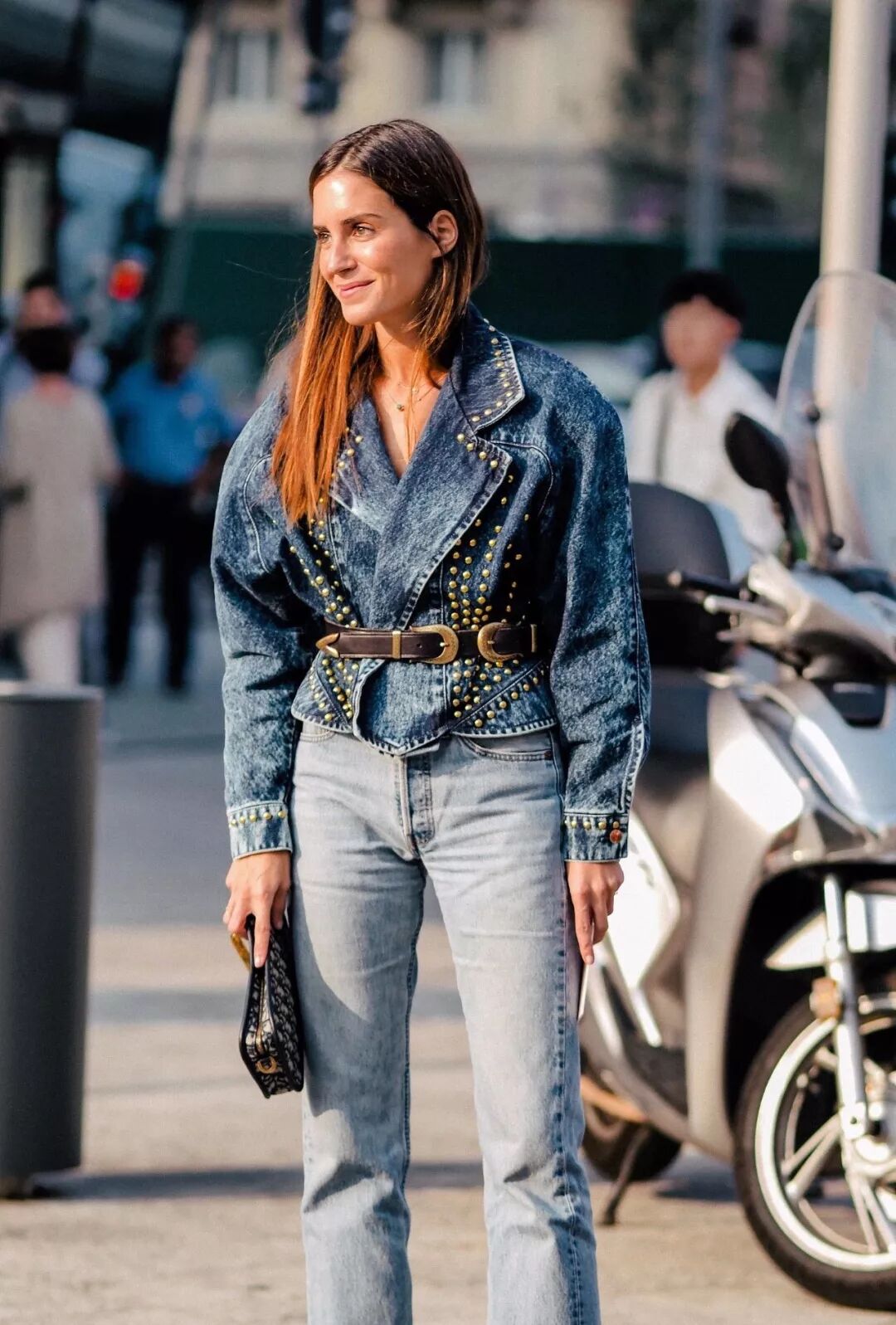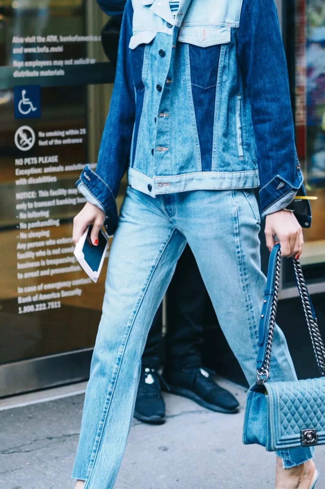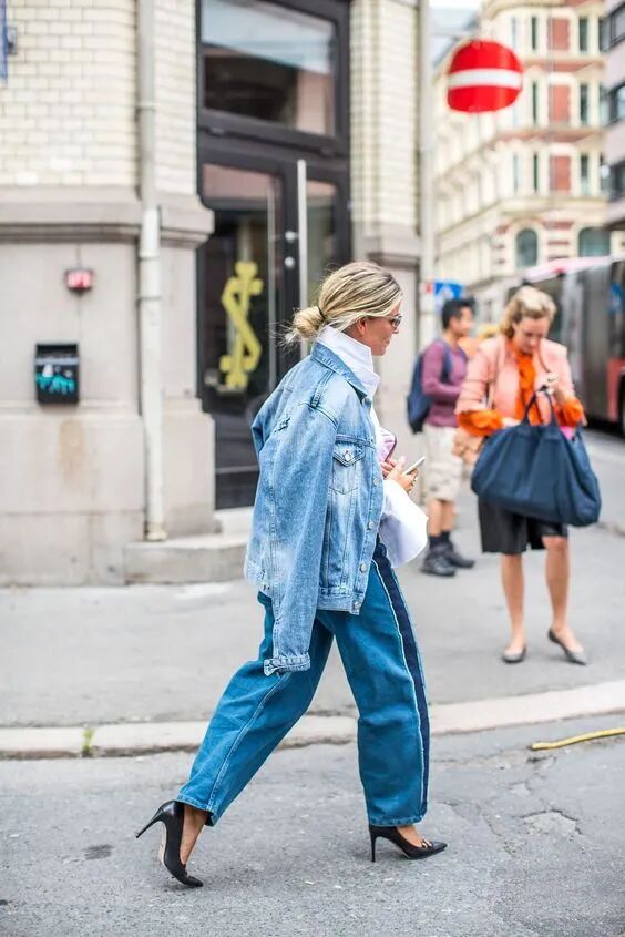 牛仔外套配牛仔内搭;