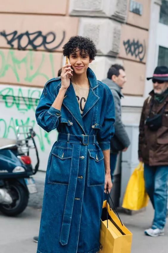 中长款牛仔衣从今年春夏就开始流行。我们毫不怀疑,接下来,牛仔长外套将成为主销款式。优雅高领线或潇洒风衣领,以及长袖、绑带等朴素细节也是接下来的关键流行趋势。建筑廓形或异域风宽松长袍轮廓,也会比修身束腰的比窈窕轮廓更受欢迎。明线设计不仅起到了缝合衣身的作用,还让单调的牛仔衣焕然一新,完美修饰曲线。明线设计还能弱化牛仔单品的休闲感,让随性的衣着显得高级时髦。时髦人不再满足于简约牛仔单品带来的搭配便利。因为他们知道,只有够醒目才足够时尚~所以,独特的拼接设计牛仔单品,成为这几年很受欢迎的一个趋势。以衣橱中通用的牛仔裤为例,尤其是宽松款,一味强调极简的设计本身没有太多亮点,浅色也更容易显腿粗胯宽。倒不如融合深浅不一的丹宁面料拼接。哪怕是搭配前几年买的基本款,也给这一身注入了新的活力。当然,细节上的铆钉、磨边点缀,以及不规则剪裁今年也非常流行。许多个即将出门的清晨,我们常会觉得没衣服穿了,可衣橱塞得满满的。实际上,服饰的数量不重要,重要的是你得学会时尚元素的重新组合,它才是为你塑造独特而美好风格的秘诀~