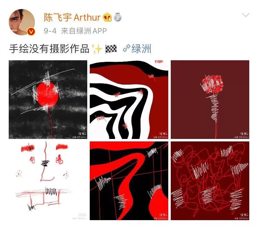 他几乎每天都会更新代表自己心情的手绘作品,大多是有冲击力的色彩和简单的线条画作,就是为了能让粉丝直观地感受到他眼中的世界和心情~小编已经被暧化了,入股陈飞宇,真的不亏啊旁友!