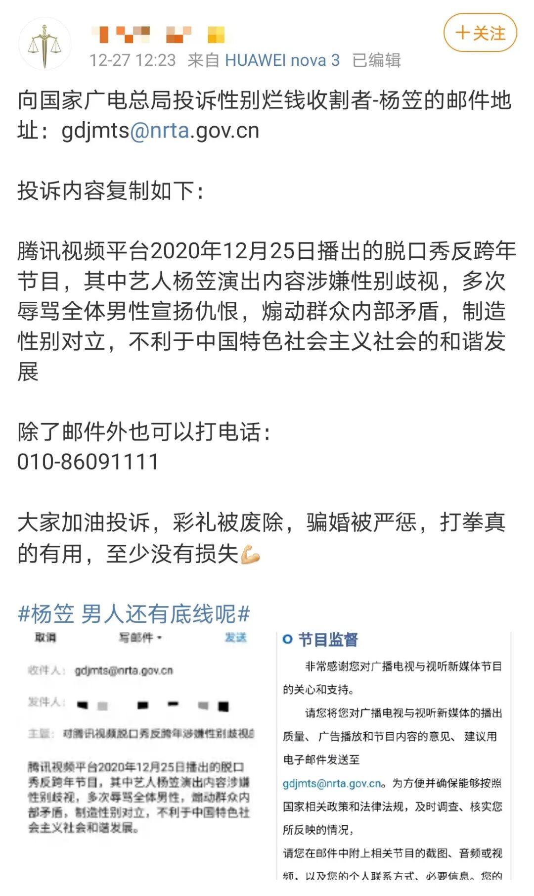 自从杨笠几天前参加笑果文化的《脱口秀反跨年》以来,一直连着不断上热搜,从“还有底线”、“见仁见智”等新金句,到池子出言不逊的点评,再到各路大V纷纷表态……而最新的剧情竟然是:杨笠被举报了!