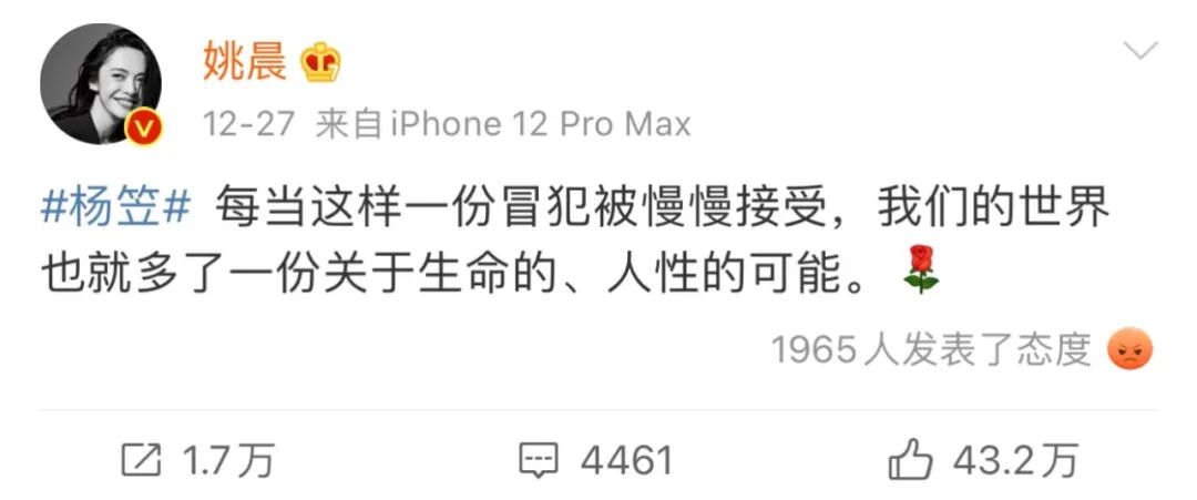 这也是为什么这场由杨笠冒犯部分男性引发的热搜,成了越来越多人开始讲道理的起点。“每当这样一份冒犯被慢慢接受,我们的世界也多了一份关于生命的、人性的可能。”