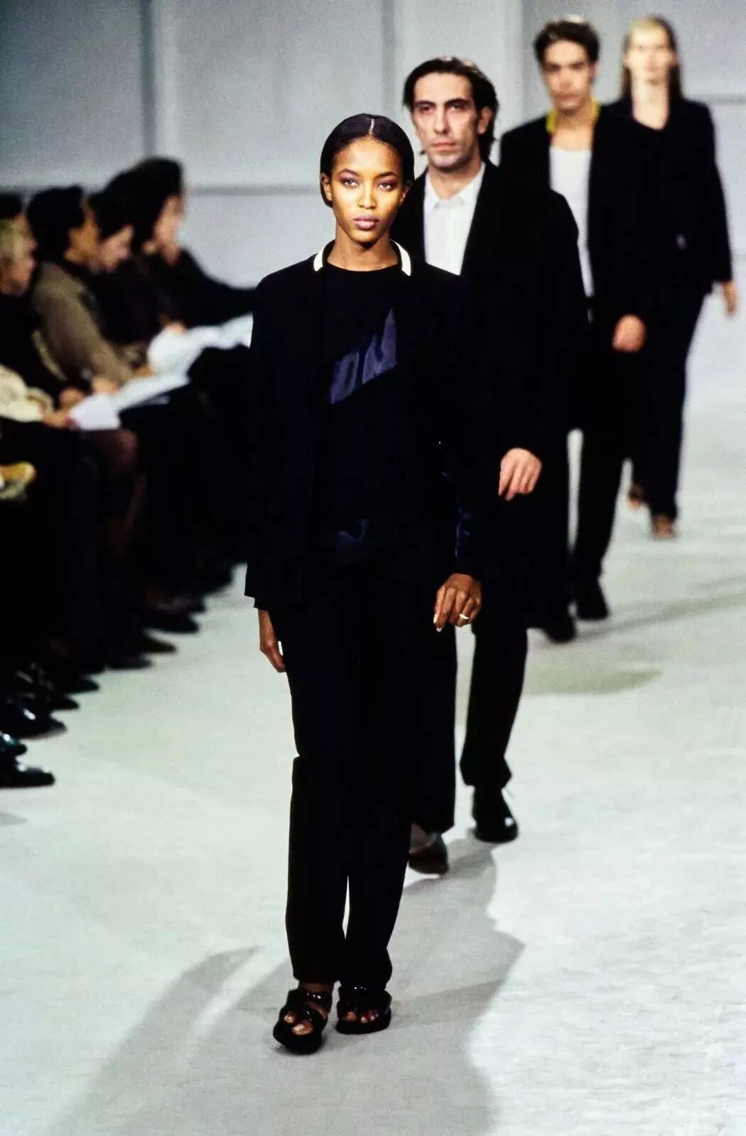 这在当年引起了巨大的轰动。而到今天,2020年直播看秀的形式能够得到顺利进展,可能也与Helmut Lang多年前开创的先河有着一定的联系。
