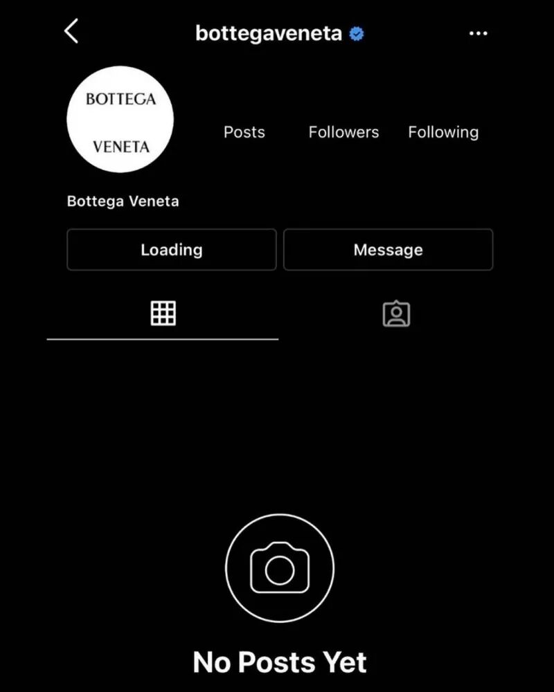 但就在昨晚,BOTTEGA VENETA竟然在一夜之间注销了Instagram、Twitter、Facebook等所有官方社交媒体账号?