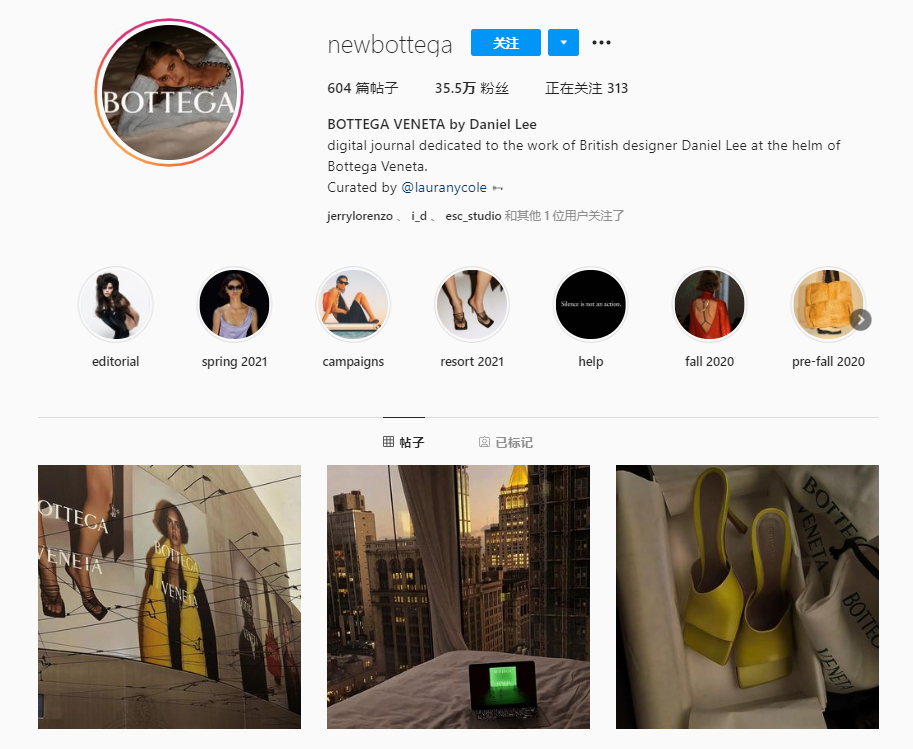 在Daniel Lee发表首个BV早秋系列后不久,由品牌粉丝创办的「@NewBottega」帐号更新速度甚至超越官方账号。