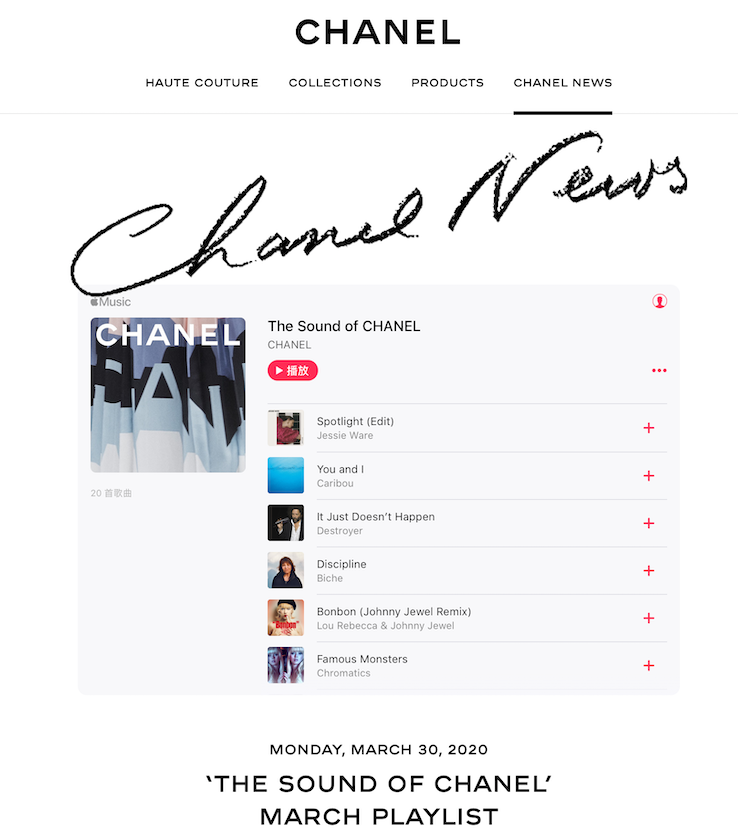 Chanel在 Apple Music上创建了歌单,