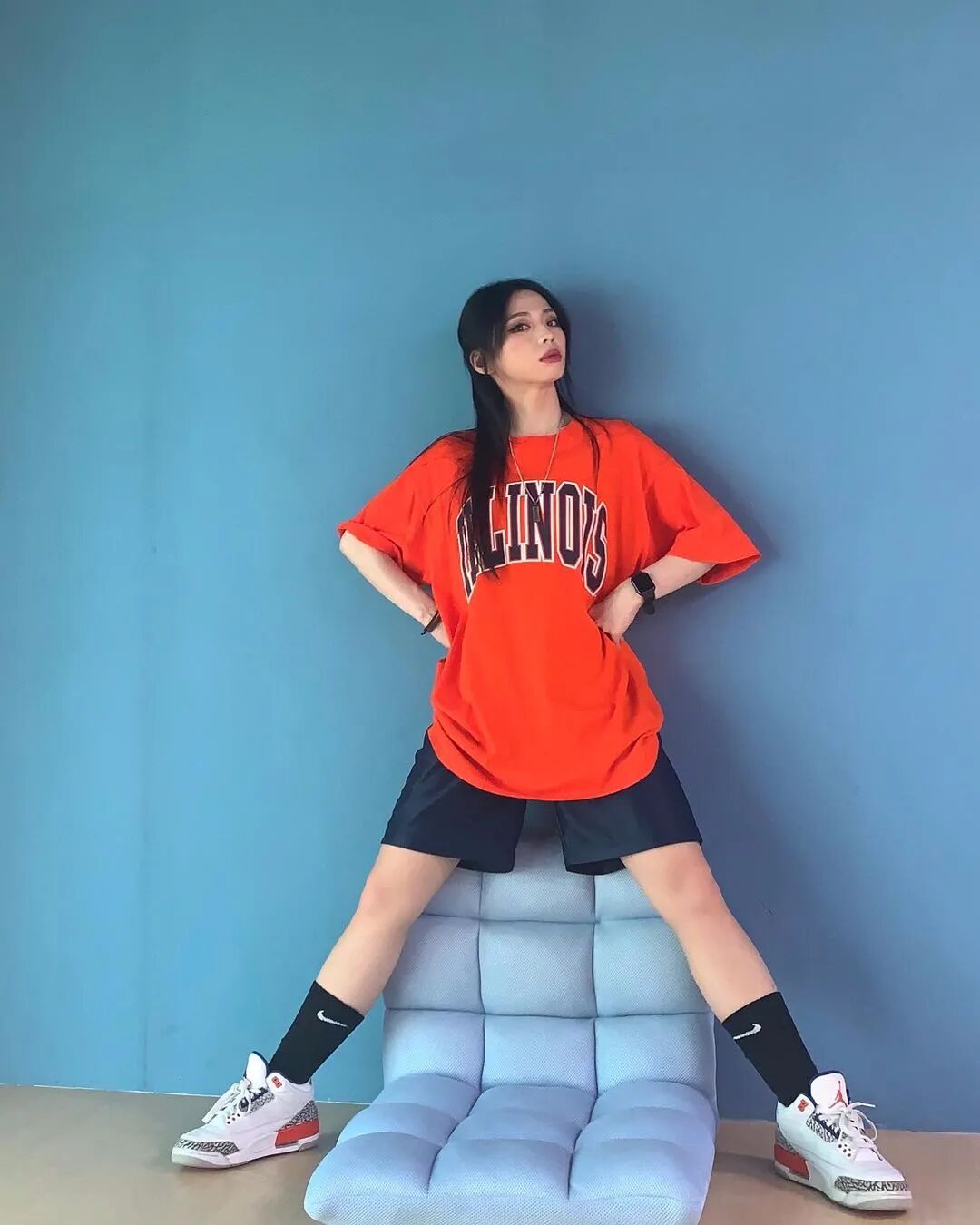 Lia Kim 还是非常有自己的 Sense ,不仅仅是挑一些热门的球鞋上脚,像这双冷门但造型出彩的 Jordan Air Latitude 720 她也能霸气驾驭。