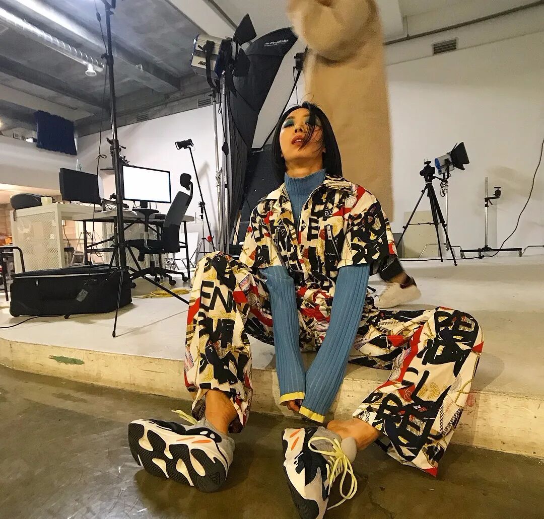 YEEZY 700 这样又舒服又高人气的鞋款,Lia Kim 当然要上脚示范一下。