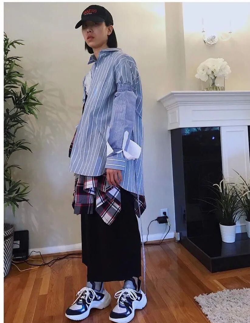 除了是个球鞋 Girl ,Yoojung Lee 也爱穿 Stüssy、Palace 等街头品牌的衣服,是一位不折不扣的潮妹。并且她更多时候给你一种领家妹妹的感觉,是你想象中的球鞋女友 - “笑眼妹”没错了。