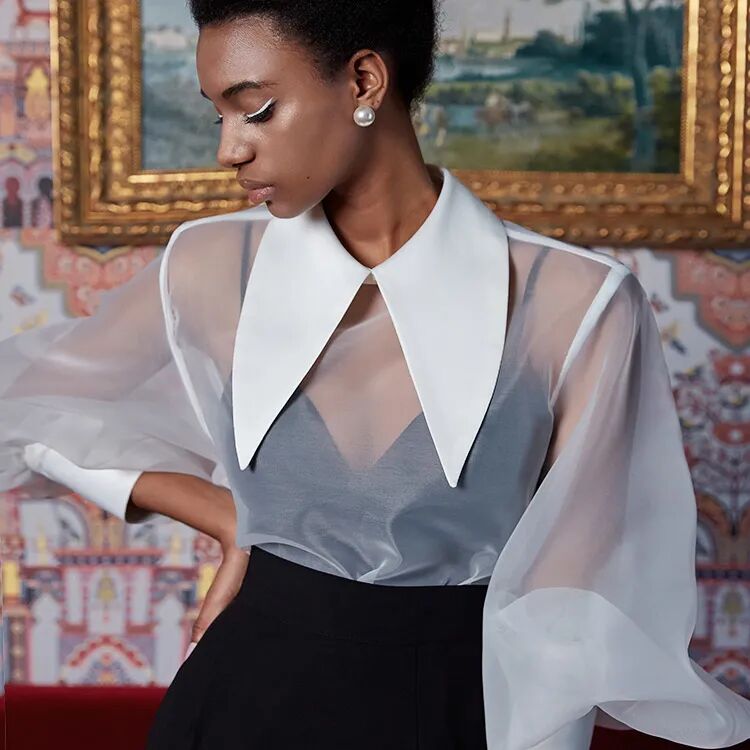 平时千瑞珍穿衬衫,也总爱各种充满华丽宫廷风的泡泡袖、羊腿袖款式的,一方面是为了凸显气场,一方面也蛮符合她女高音家的人设,非常古典。