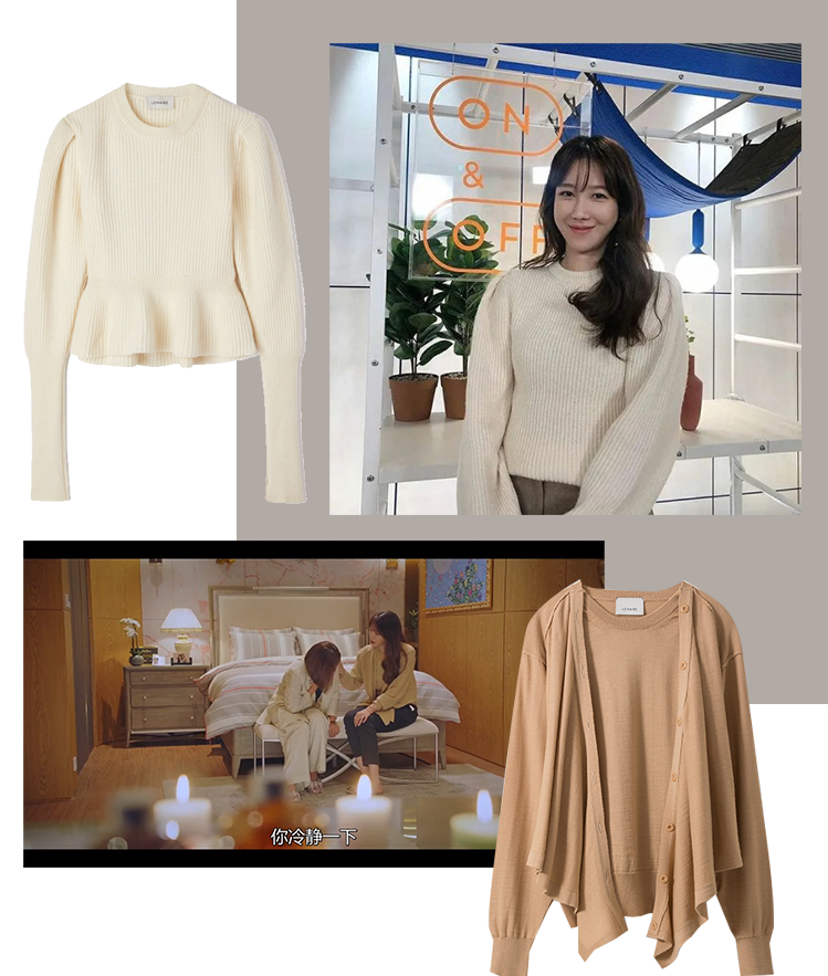 富太们一般都讲究面料和质感,所以她也爱穿各种软糯的毛衣,好几件都是来自Lemaire的。