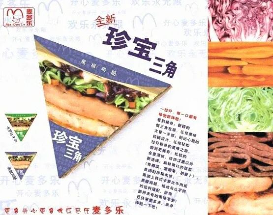 当时麦当劳为了宣传这个特色菜品,还请到了王力宏和郭晶晶出演珍宝三角的电视广告,二位还亲临了在上海的珍宝三角发布会。可见麦当劳对这款菜品的重视,只可惜在数年之后黯然下架。