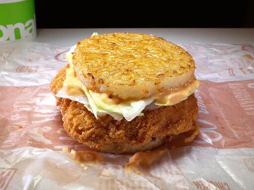 另外一款香鸡米堡则可以看作经典香鸡汉堡的“进化版”,调味恰到好处的日本米包裹着生菜及清爽优格酱,再配上厚实的炸鸡排。