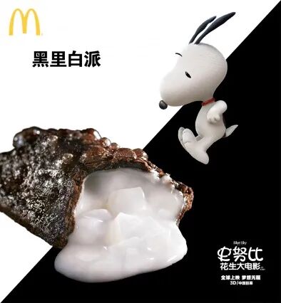 说回15年的黑白堡系列,当时还是和史努比的限定联名款(配色方面搭到了极致),同期还推出了酥脆可可黑壳加糯甜椰果白心的黑里白派,以及同样黑白配的两款豆浆。