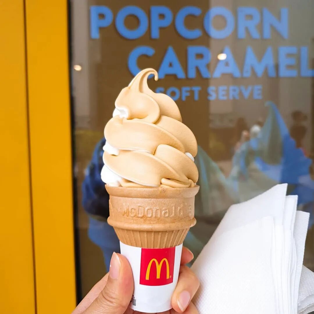 据闻在2021年初,新加坡麦当劳就曾推出过爆米花焦糖口味的圣代,去年年初则把产品系列扩充了一番(甜筒还有爆米花焦糖雪糕和原味香草雪糕的混搭版本),除了甜筒外,还有爆米花焦糖口味的奥利奥麦旋风,与此同时也复刻了同口味圣代。