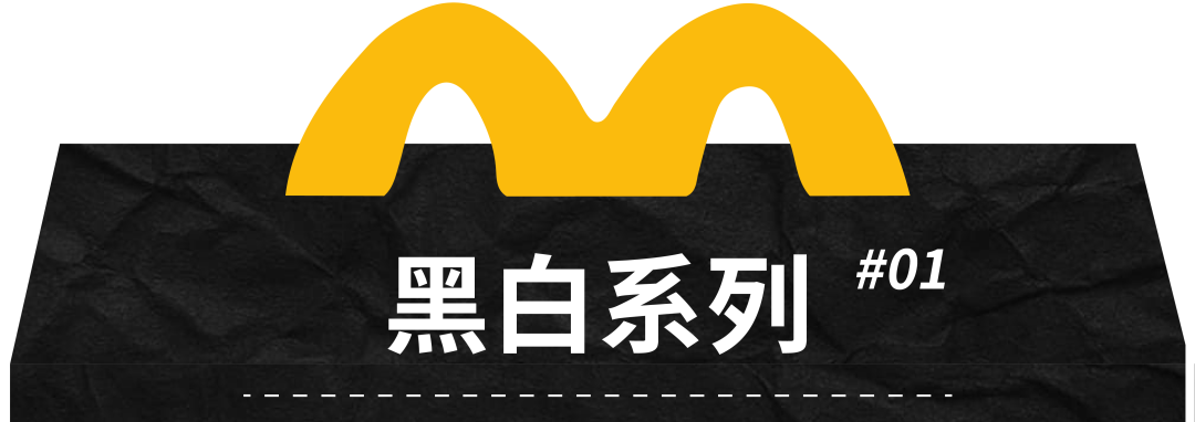 首先是我个人认为配色最酷的「黑白系列」,还记得当时是2015年末,刚进入大学的我在课间偶然看到了麦当劳窗上醒目的黑白配色广告(潮流三原色占了俩),然后那堂课基本上就是一个等下课的状态。