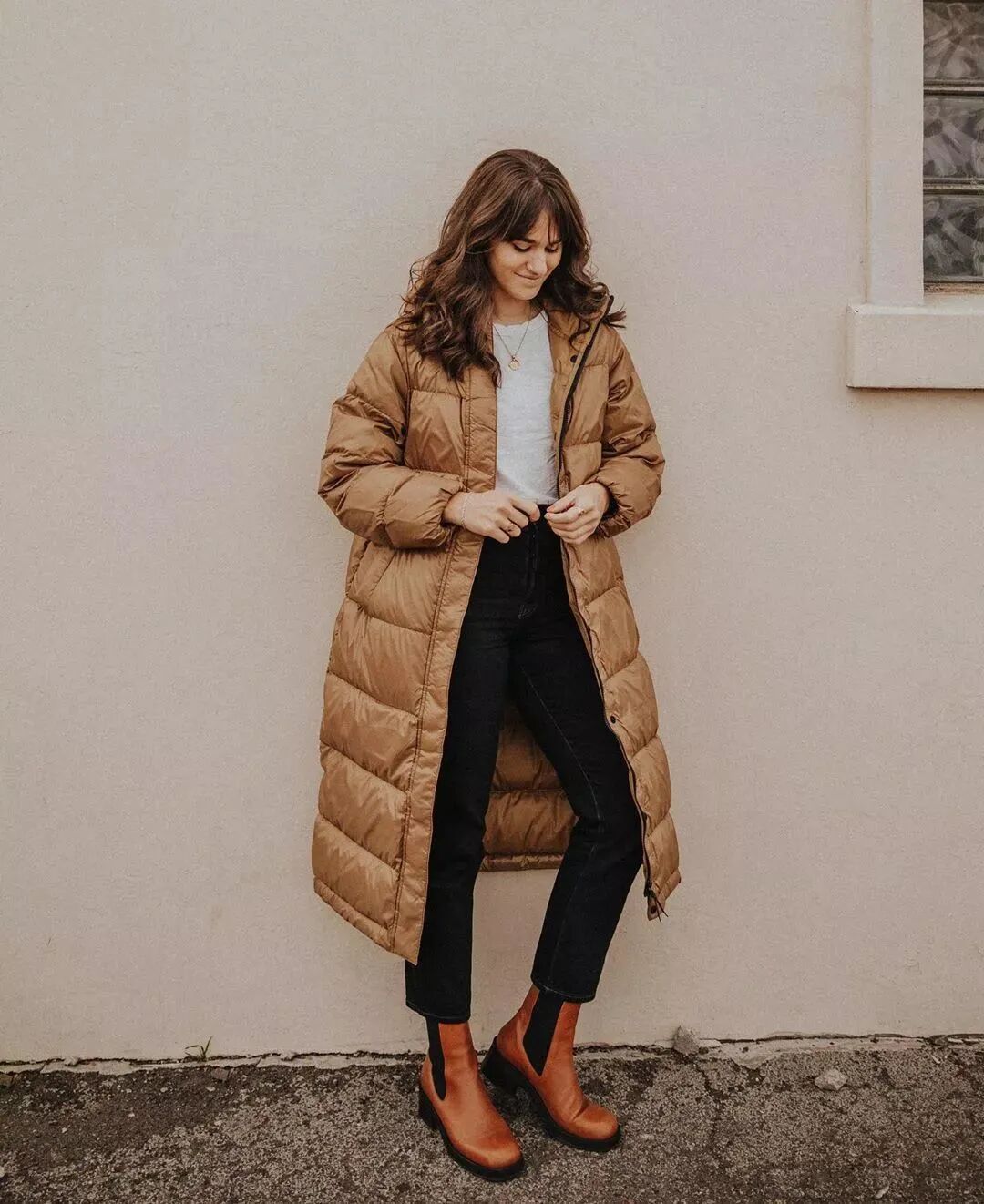 长款羽绒服+各种九分裤推荐给每一位女生,两件单品长度比例大概二八分,这个比例是最显高的,脚部以上有个小小落差,全身既有层次又不会压身高,搭配一些短靴超帅气。