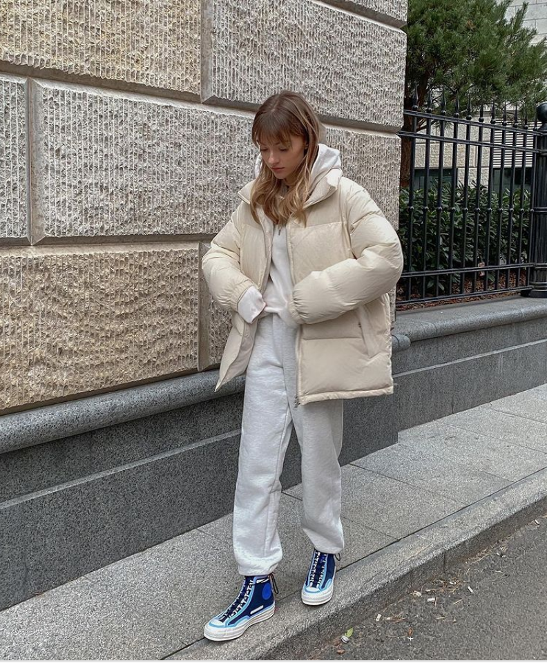 小萌新们今年都偏爱用羽绒服+卫衣套装,看起来舒适软萌,不挑身材,随便穿穿都好看。