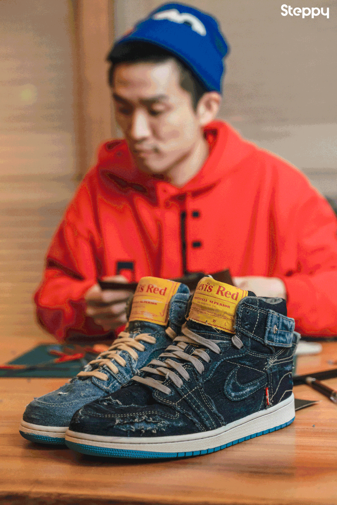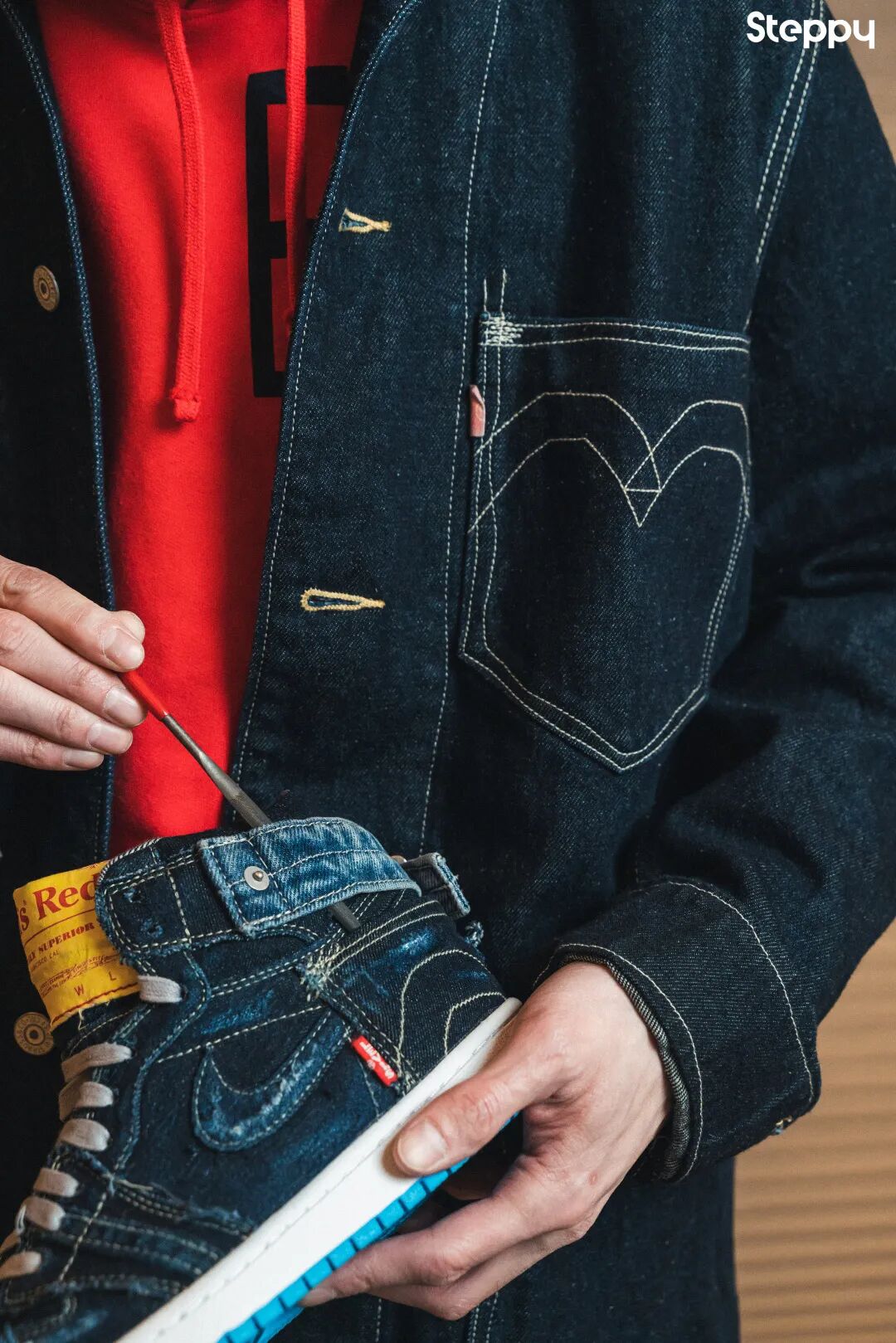 在今年 Red 重新推出完整系列后,Kookies 以“牛仔裤的细节体现在 Sneakers 上”为灵感,用 Red 系列改造了一双球鞋。还有两位在不同领域的收藏者也对 Red 的先锋性分享了他们独特的看法...