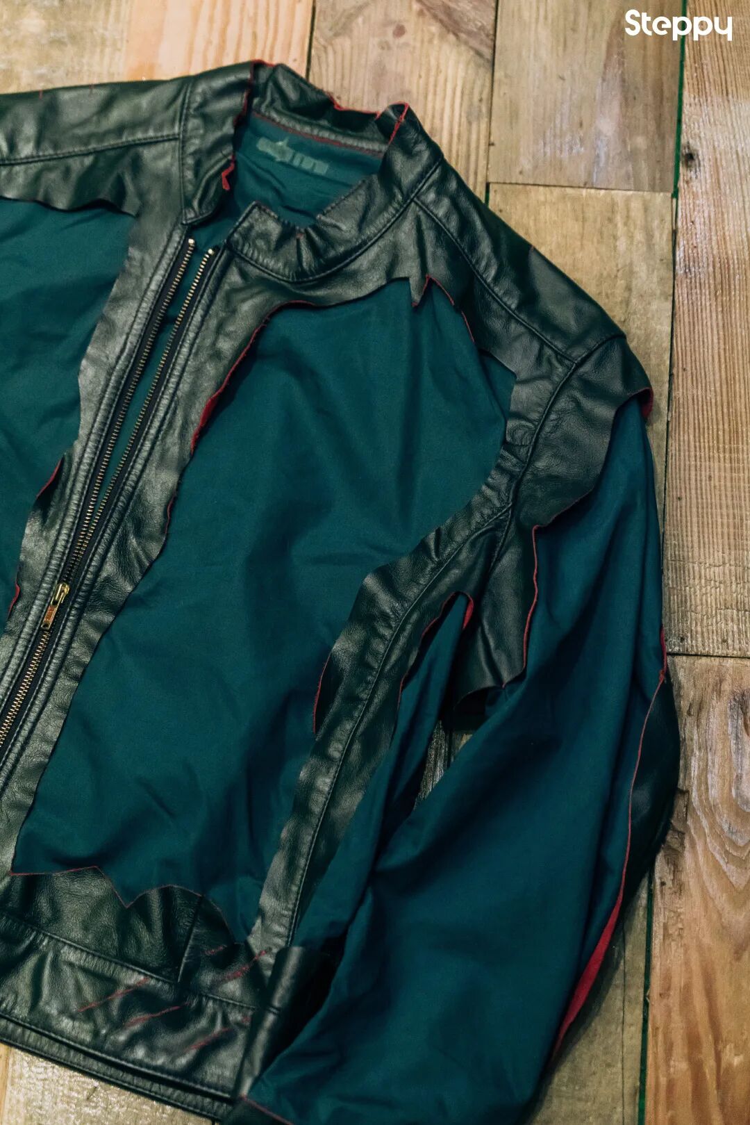 Levi’s Red 系列的解构主义作品。颠覆了斜拉链机车皮衣的原有型态,对其进行解构。在保留皮衣原本框架线条的同时,实验性地对皮料进行破坏,裸露出内衬,让单件机车皮衣看起来有着更丰富的层次感。在 20 年后的今天,大家依然能看到这种设计元素体现在很多不同品牌和类别的服装上,也证明了 Red 系列当时的前瞻性和先锋性。