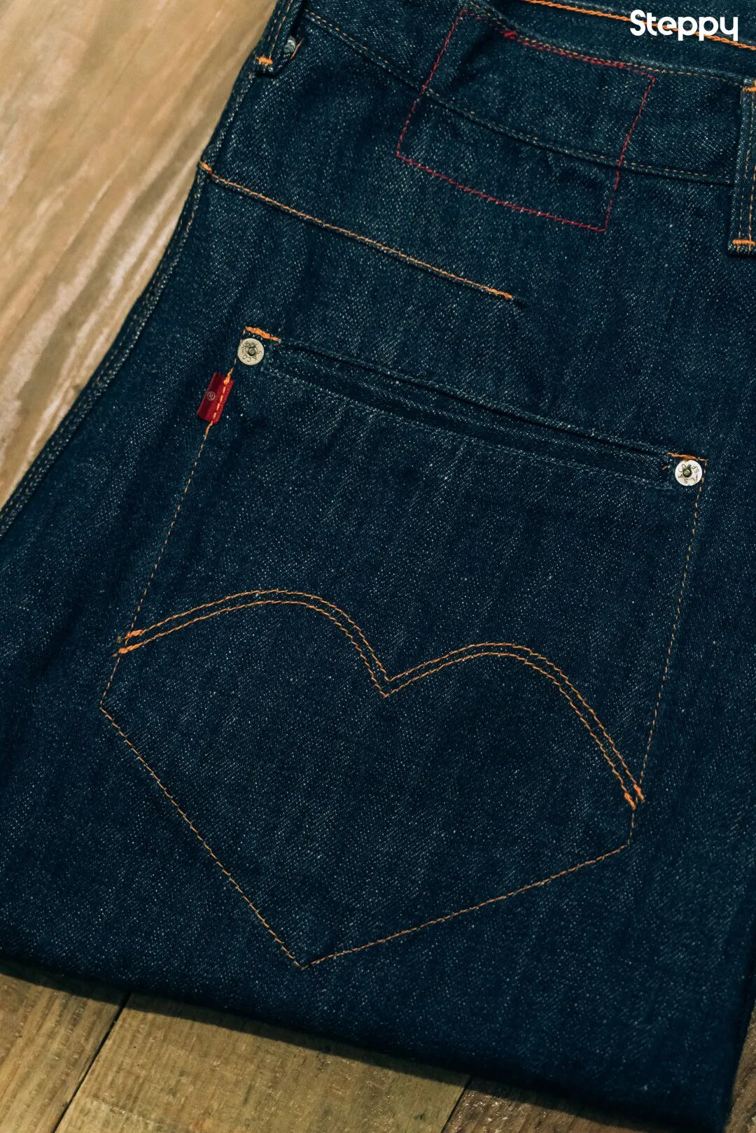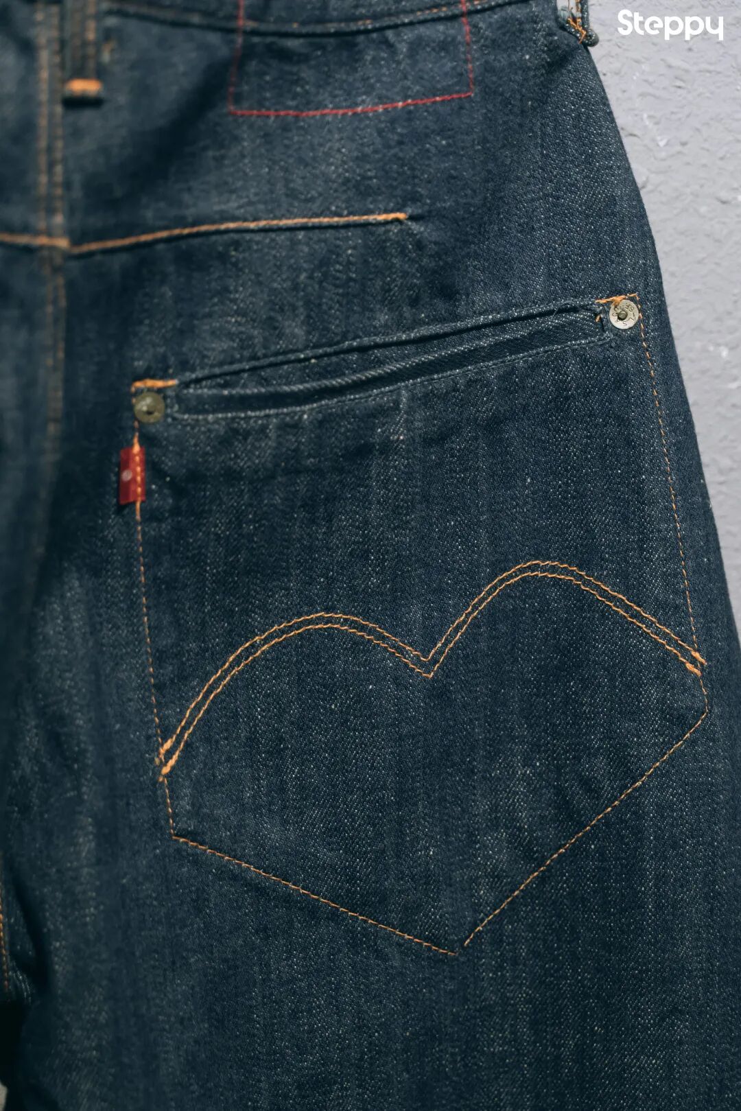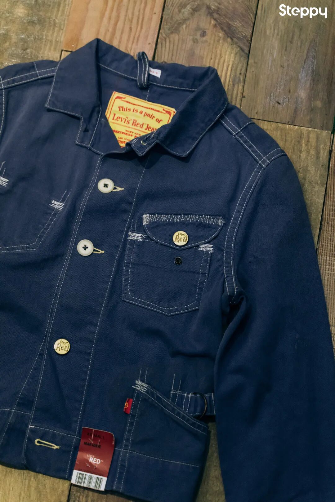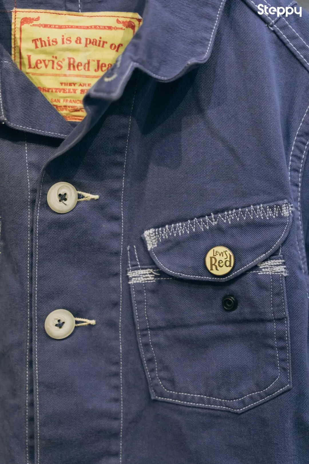 黄底红字的牌标、看似随意不规则的之字补强线(Zigzag Stiching)是这个系列令人印象深刻的记忆点,也是本次 2021 年 Levi’s Red 先锋之作的复刻来源。