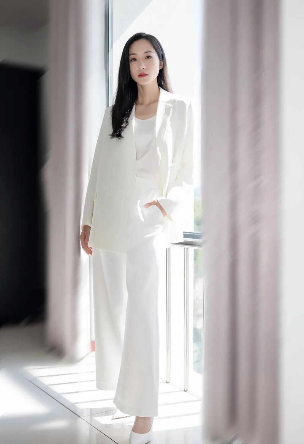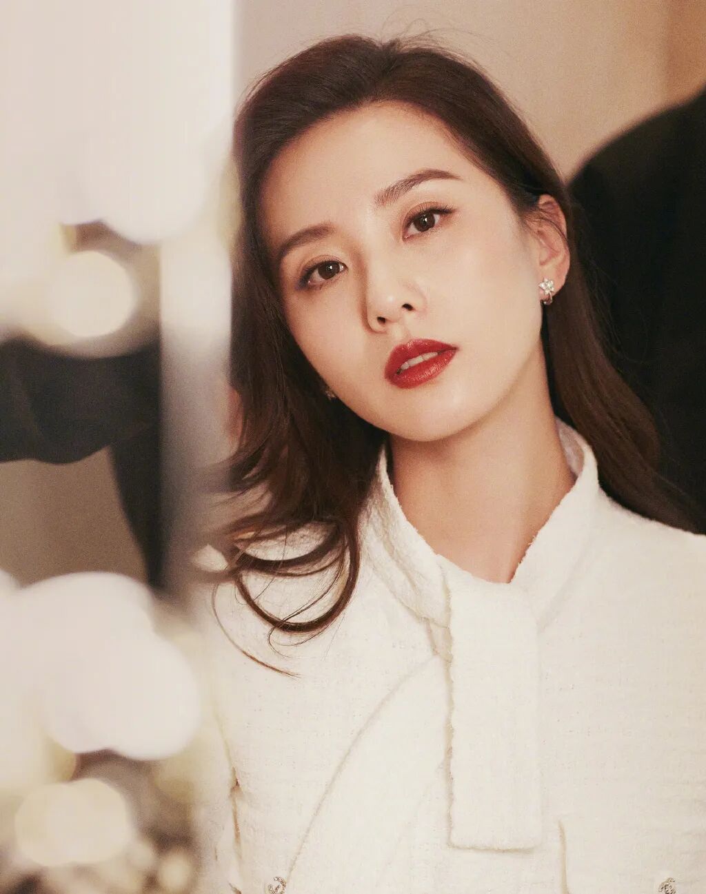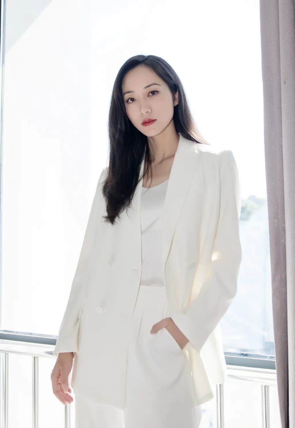 一袭白色上衣出席电影发布会的她同样魅力十足,氤氲的浴缸与窗上半挂的雨珠,将沉稳又酷飒的女性魅力彰显得淋漓尽致。