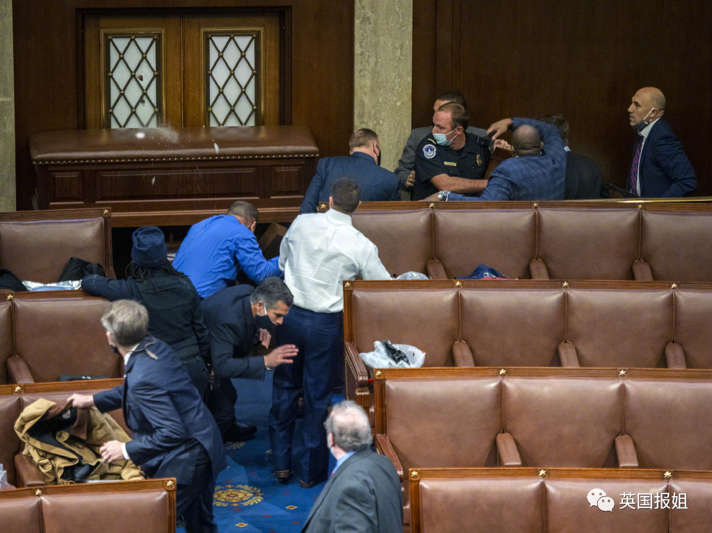 正在进行的国会联席会议中断,国会认证总统大选结果的程序被迫延后。