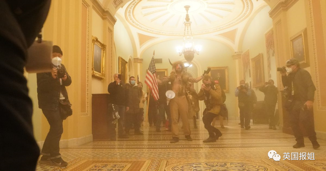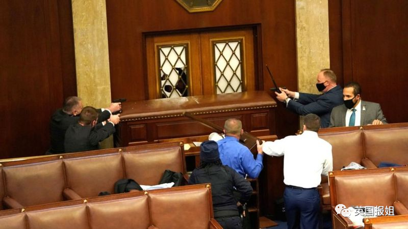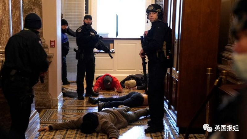 围攻国会山、砸碎玻璃、占领办公室,参议院众议院被迫用桌子堆起障碍物,合法官员的生命安全受到威胁——这不是抗议,这是叛乱!”