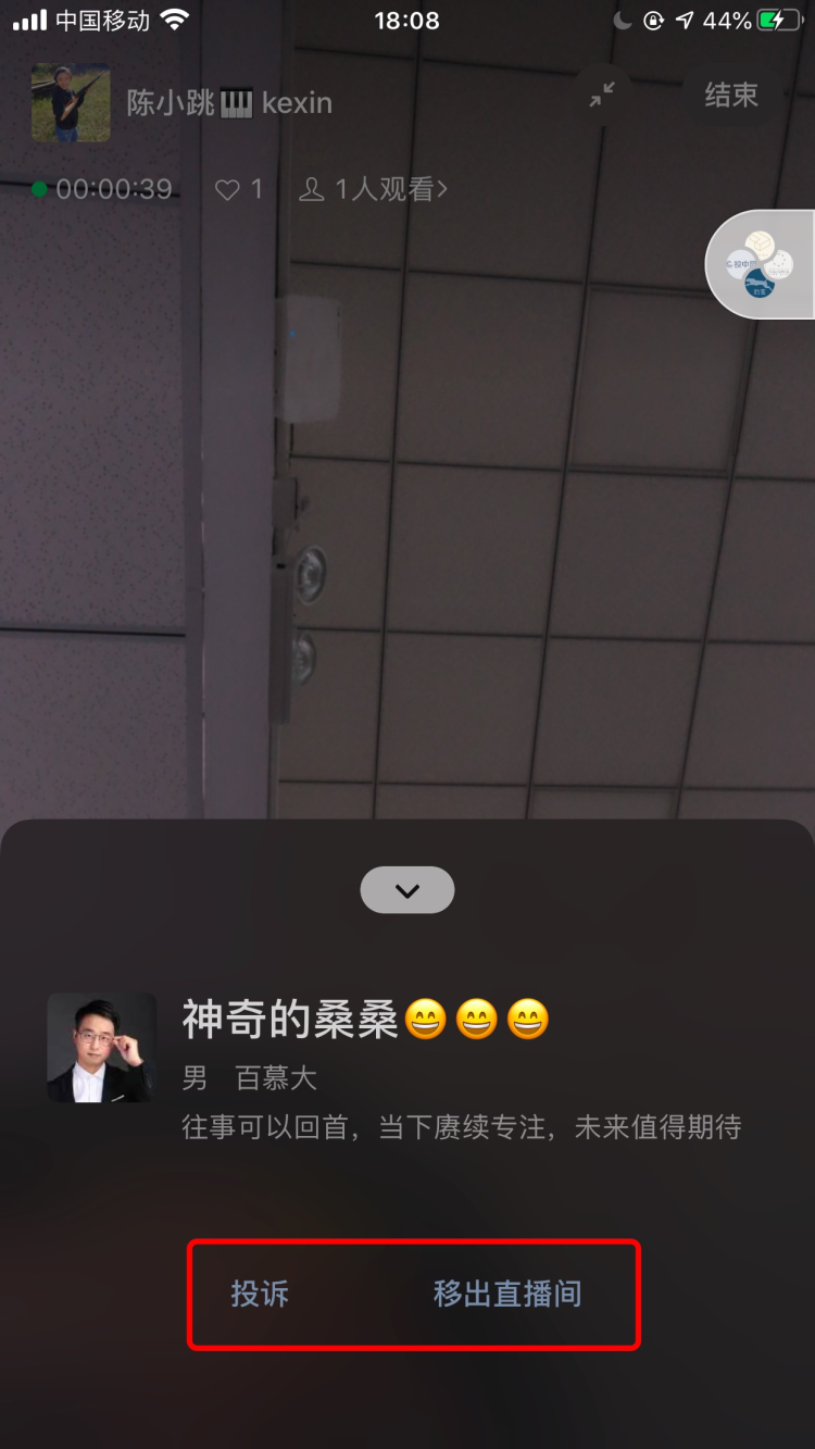 主播和观众的互动方面,主播可选择关闭评论,投诉观众或移除直播间。观众可以无限、免费为主播点赞。目前,没有看到购物车和美颜图标,界面看起来相对简单。