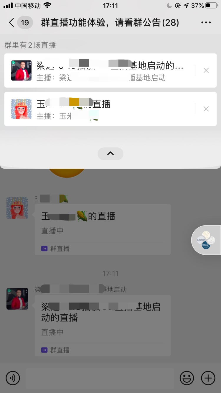 而进入一个正在直播的群,也会有第一时间的显眼通知。