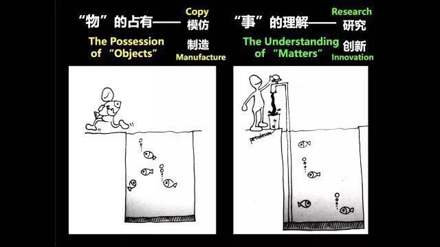 一旦引进,我们拄了外国人的拐杖,就不愿意思考了,就跟着做了,挣钱了,有了效益。