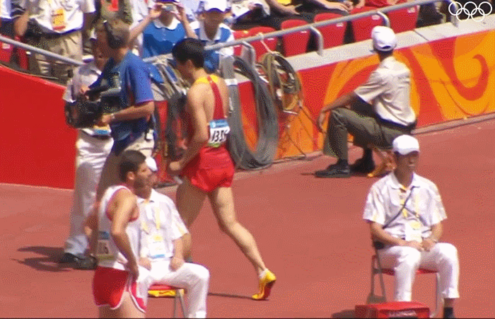 他知道自己无缘奥运了,在退出赛场后又突然折返回去,坚持用单脚跳到了终点。