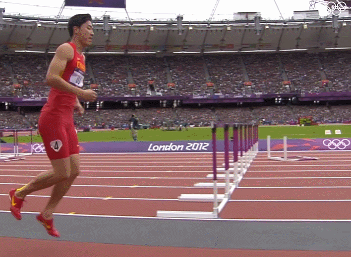 2012年8月,伦敦奥运预赛,刘翔在攻第一个栏时便摔倒在地,跟腱断裂了。