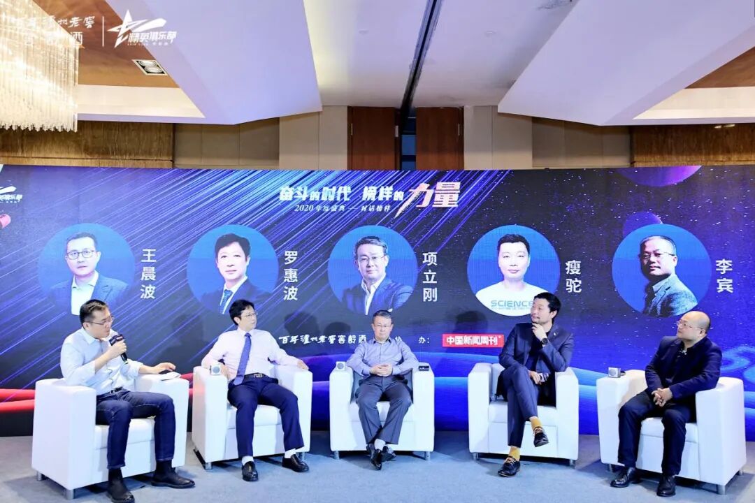 在百年泸州老窖窖龄酒2020年度盛典“奋斗的时代,榜样的力量”主旨发言环节,项立刚、瘦驼、李宾三位嘉宾分别以“5G建构智能互联网时代”、“科技路上的坚守与前行”和“与时间为友,酿出一杯极致好酒”为主题进行了分享。