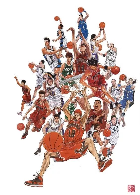 红毛热血中二的篮球少年樱木花道、帅气潇洒人见人爱的流川枫、迷失过然后重拾篮球梦的三井寿、勇猛无比的大猩猩赤木刚宪、灵活控场的王牌后卫宫城良田、明媚动人的赤木晴子,还有安西教练、彩子、木暮公延、仙道彰、藤真健司……他们都是我们永远的青春呀!