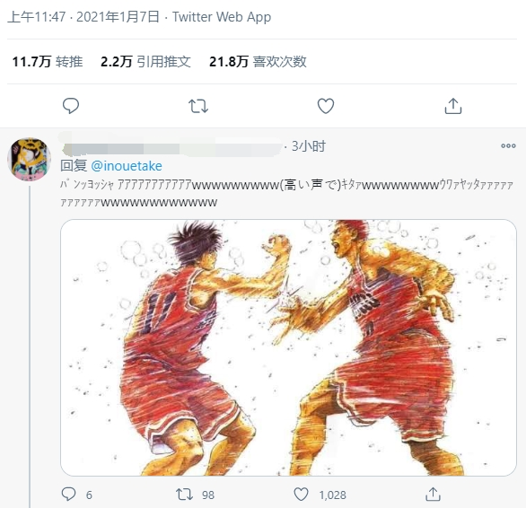 今天,1月7日,《灌篮高手》漫画作者 井上雄彦 在个人社交平台发文,称《灌篮高手》将电影化,其他细节暂未透露。