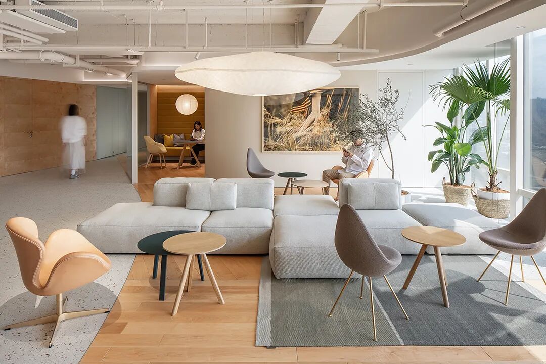 将其延伸至场景的设计中,展露自然纯粹的本质,红山设计为丹麦品牌ECCO位于西安的办公空间,创造出与品牌理念相融合的动态场景,让自然的气质、律动的节奏和持久积极的生活状态凝聚其中。