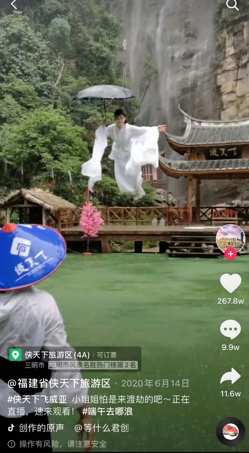 这些小姐姐的视频自带强大的传播性,结合侠天下景区朗朗上口的好名字,很快引起了全国游客的注意,隐藏在福建山水之间的侠天下突然成为网红武侠世界也就不足为奇了。