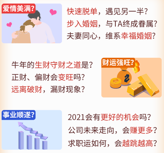 所以,没有上榜不代表你在2021的运势就不好!想要了解更精准的运势走向,大家可以通过【2021紫微流年运程】去获取!