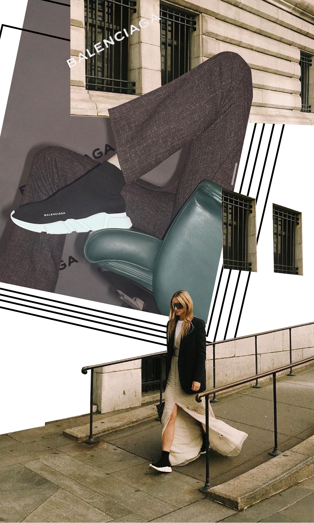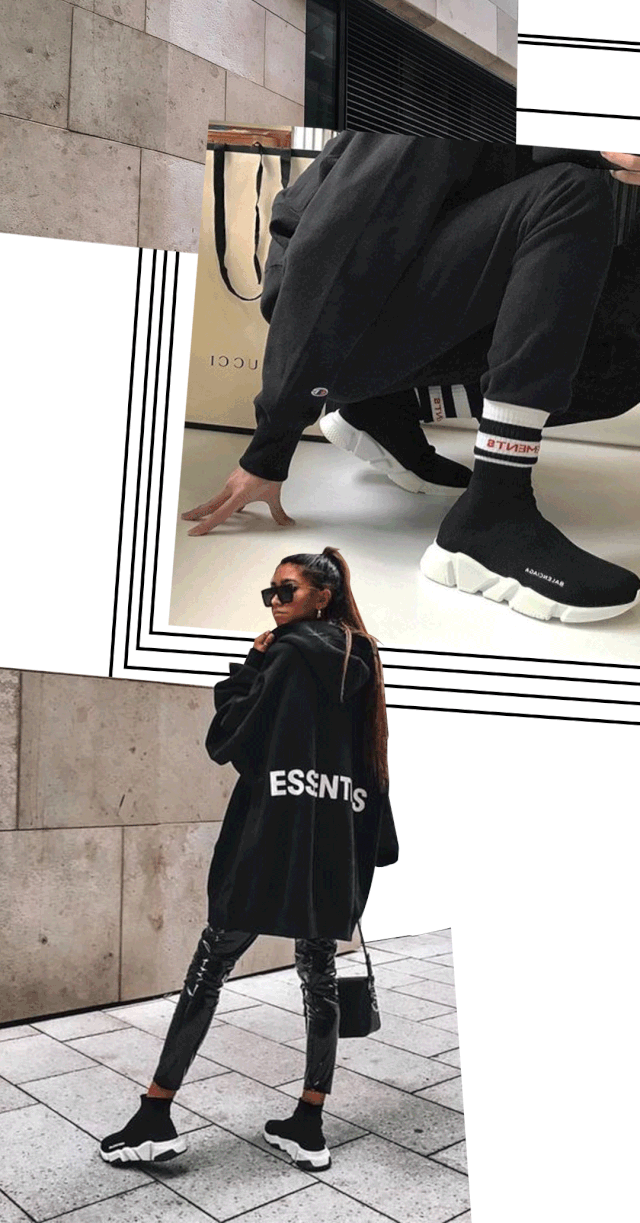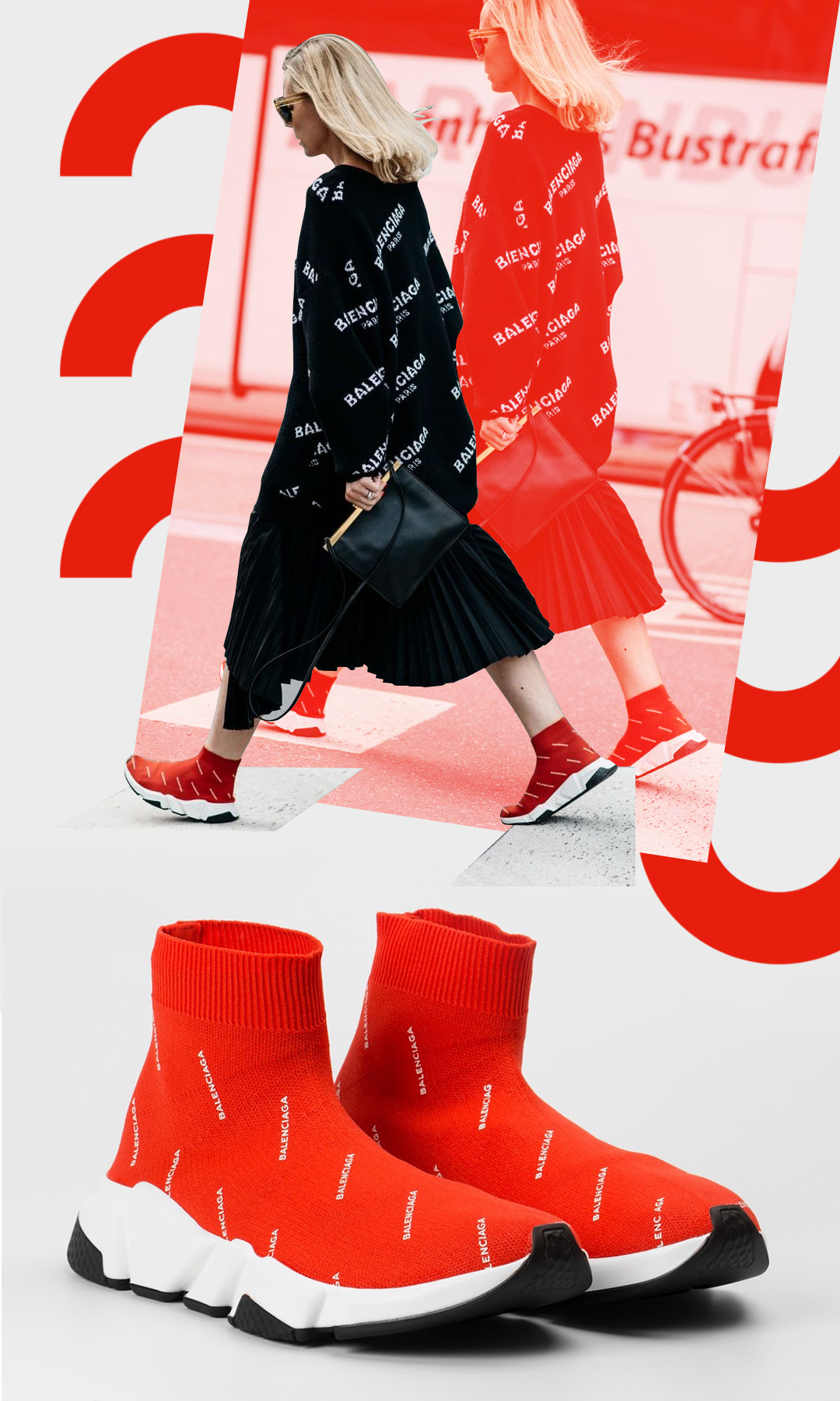 的确,在2016年之前,一直霸占大家视野的当属各种小白鞋,它的好穿、实用、百搭无一不证明了它的爆款属性。可时间长了,就会想,在运动鞋上,还会有其他创意吗?这个问题到了2016年年底,便由BALENCIAGA交出了一份超越满分的答案:也就是SPEED系列,袜子鞋。这双超越满分的创意,不止年轻人买单,袜子鞋一经推出就引发了全球购买热潮,谁都没能逃得过,也从没有一个品牌会把运动鞋和袜子(概念)结合的如此彻底,乃至颠覆大家一直以来对运动鞋的认知,刚开始的预售阶段就已经告罄,想要入手就只能等!最早的SPEED系列其实只是简单的黑白两色,流畅的纯黑鞋面设计采用了针织面料,它的好处在于它有弹性并且贴合各种脚型,实穿度极高。鞋面一直延到脚踝,只有外侧印着“BALENCIAGA”字样,而白色的鞋底采用了厚底橡胶材质,在凸显身高上更是下足功夫。突降爆款自然会伴随质疑,然而这些质疑声早在众多博主的演绎下消失了,转而成为了各种层面上的“必备单品”!从2016年开始,SPEED就是「必入」。还有最会唱歌的穿搭博主,穿什么火什么的GD亲自带货呀,不入可能不太行。就像上面说的那样,看似简单,却可以百搭各种风格的SPEED系列,根本就无需我们去教你们怎么穿,因为,怎么穿都可以。随着袜子鞋成为街头爆款,BALENCIAGA也是趁热打铁,继续推动袜子鞋的可持续性大热!比如在2021年,就与当时名声大噪的巴黎买手店colette合作并推出了红色针织款,这一款也是早早就售罄。另外还有讨论度颇高的,与MR.PORTER合作的“双B”独家胶囊限定款,灰色鞋面能与复古、街头等多种风格融合,在“办公室”也能轻松时髦起来好吗!此后,SPEED系列大家庭也不断加入其他设计和款式,像SPEED LOGO、Recycled LT……设计师在袜子鞋上真的是创意大开,玩转颜色和图案,各种街拍、博主造型中都能见到各种不同的SPEED版本。袜子鞋的热度并不仅仅是博主、明星带货,最重要的原因,就是BALENCIAGA这个拥有着百年历史的品牌本身。西班牙裔设计师Cristóbal Balenciaga——品牌的创始人,在时装历史上就以流畅典雅的剪裁工艺和高级定制出名。他的设计一直颇具未来感,在作品中总能看见那些具有雕塑立体感的服装。Balenciaga先生本人也非常喜欢探索新设计,对于市场动向和舆论要求,他总是持保留态度而一心扑在自己所热爱、探求的新设计上。而在他的百年时装屋展览中,还能一窥Balenciaga先生当年一改女性腰部线条的经典礼裙,在突出女性身材的同时还能保证实穿性,创新却实际。不仅如此,他最具创新意识的还有高立翻领和四分之三的中袖,并且创造性地把原本半紧身的Jacket外套做成不定形的软套装!也正因如此,这些兼有创造性和实用性的设计风格,随着时代的变化逐渐成为了BALENCIAGA的标志,袜子鞋如此,老爹鞋等其他充满创意的爆款运动鞋亦是如此。