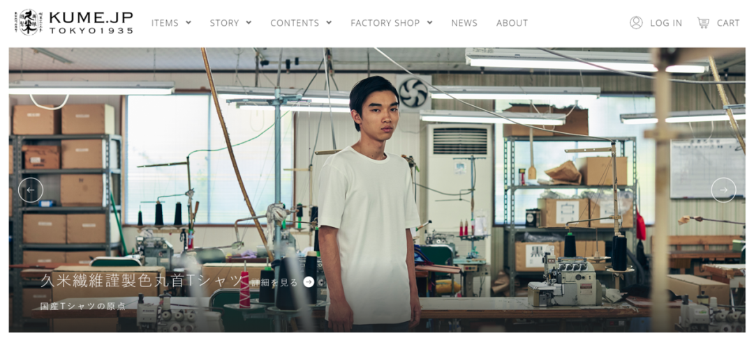 久米繊維,这个要重点讲一下了。这是一家专注T恤的日本老字号工厂,诞生于1935年,被誉为日本第一家制作T恤的品牌。