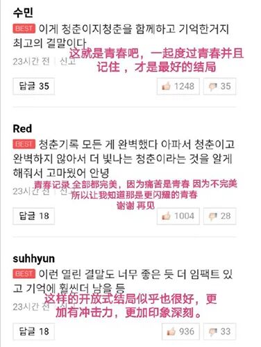 最后的结局是开放式的,尽管有点反韩剧,但是倒也不出人意外。有人这么点评,“这是一个不是理想完美的,但是最好的结局。”青春本就不只有爱情,编剧一直都没有让人物往爽剧、甜剧的路线走,而是饱满地塑造角色在现实和理想之间摇摆。我们大多数人的青春不就是这样,平实舒缓,又有点磕磕绊绊,矫情彷徨,更充满了不确定性。再回头看朴素丹饰演过这么多角色,有没有发现很多流行的审美法则在她身上完全就不适用。每一个五官特点都算不上精致,但因为面部留白多,她更有表现力,不管是时尚的还是角色;因为宽眉间距凸显出了疏离和清冷的美感;更因为圆润的面部线条消化掉单眼皮小眼睛的锐利,增加了幼龄感和甜美度,这就是高级,尽管如今高级脸有点被说烂了,但不可否认,这种自带氛围美的气质更多是融在骨子里的,存在即风格,没有任何局限性。所以那些非大众流行的美,并不是因为单眼皮美,也不是宽眉距美,更不是因为鼻梁塌美,而是她骨子里的气质成就了风格,以至于化什么样的妆、拥有什么样的五官你都会觉得是美的。