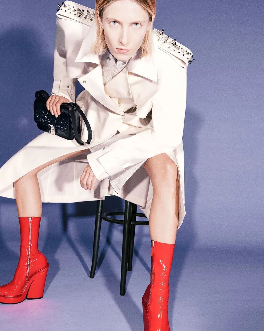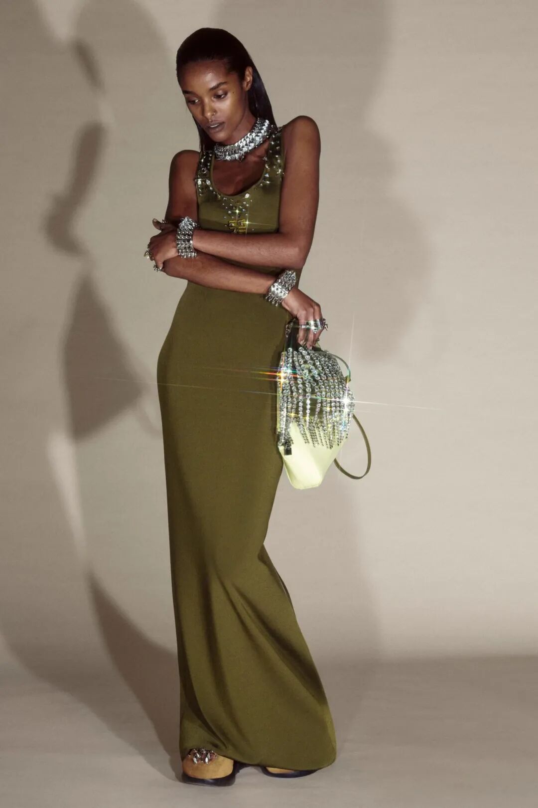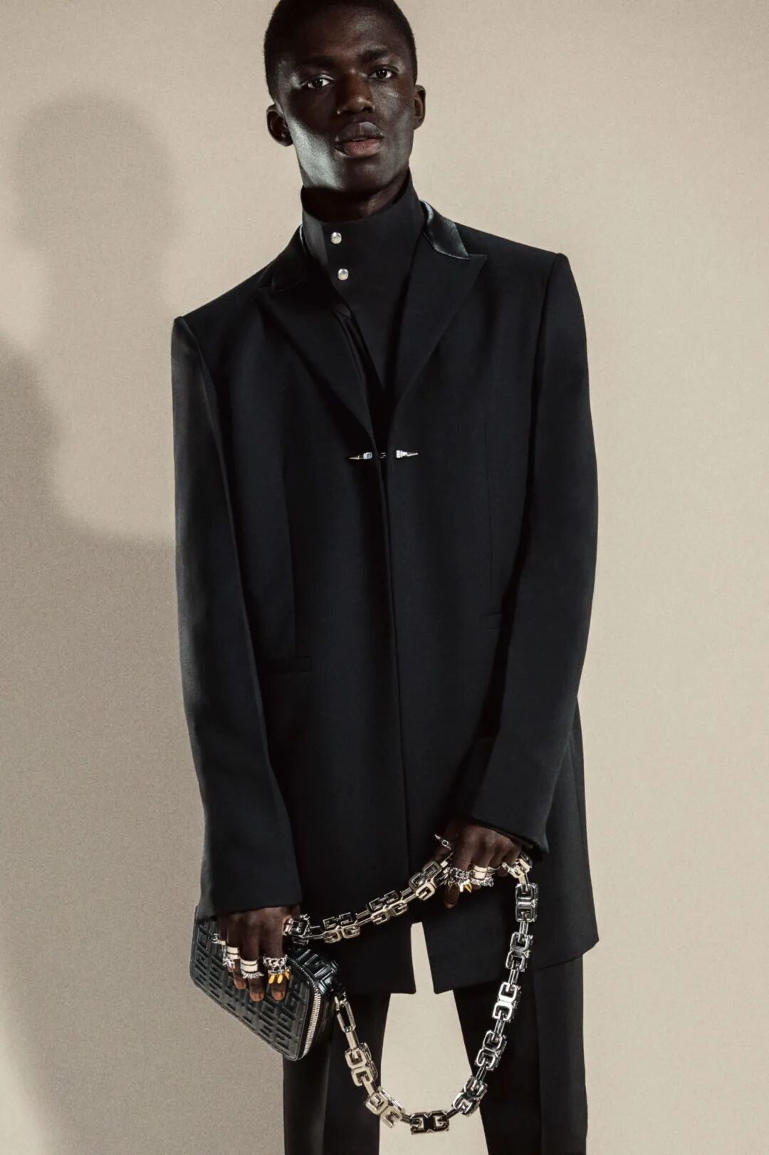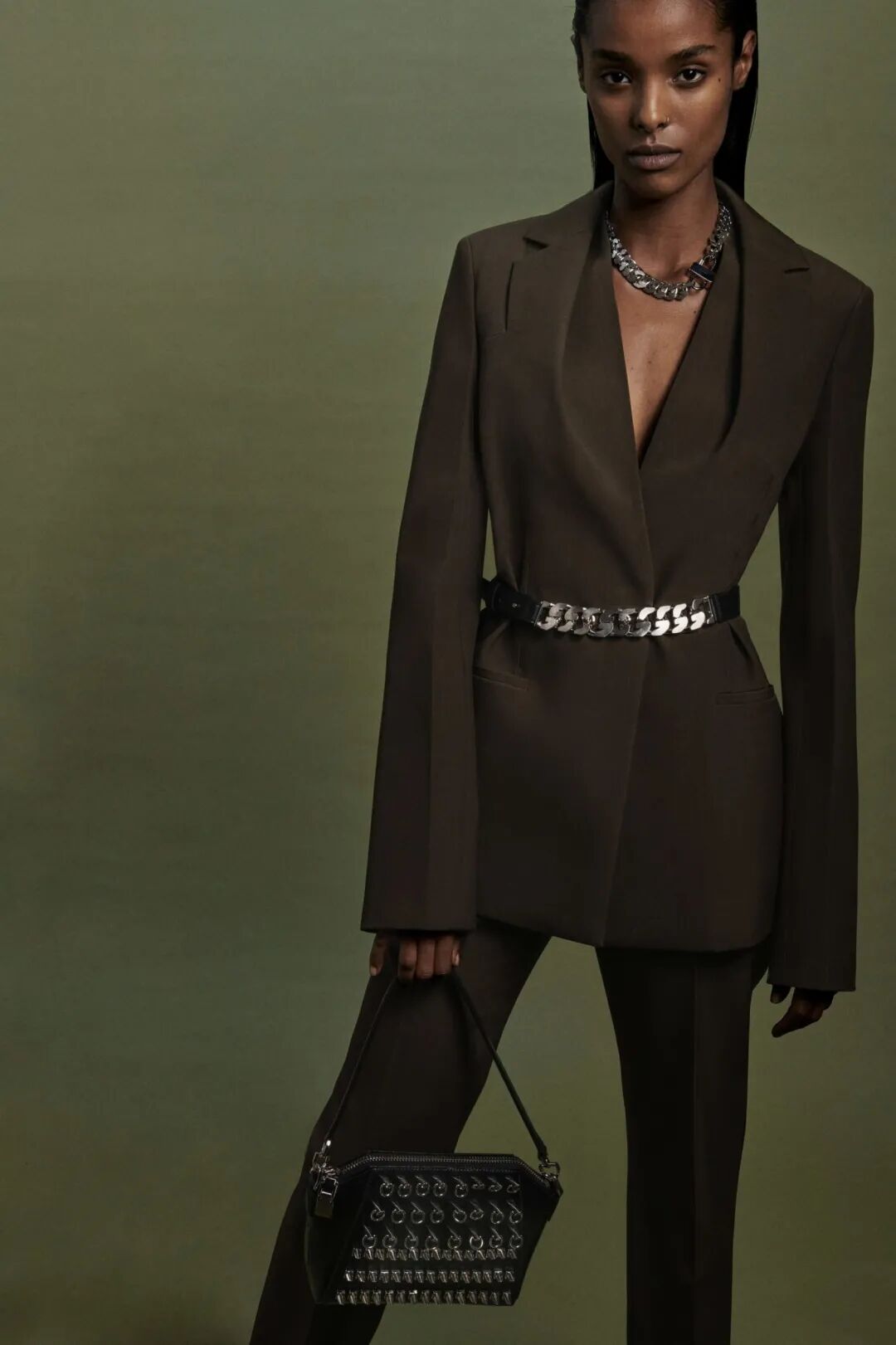 GIVENCHY 2021早秋系列的型录背景一如既往简洁干净,这也有利于人们将视觉焦点集中在服装上,尤其是全身上下的金属配饰。