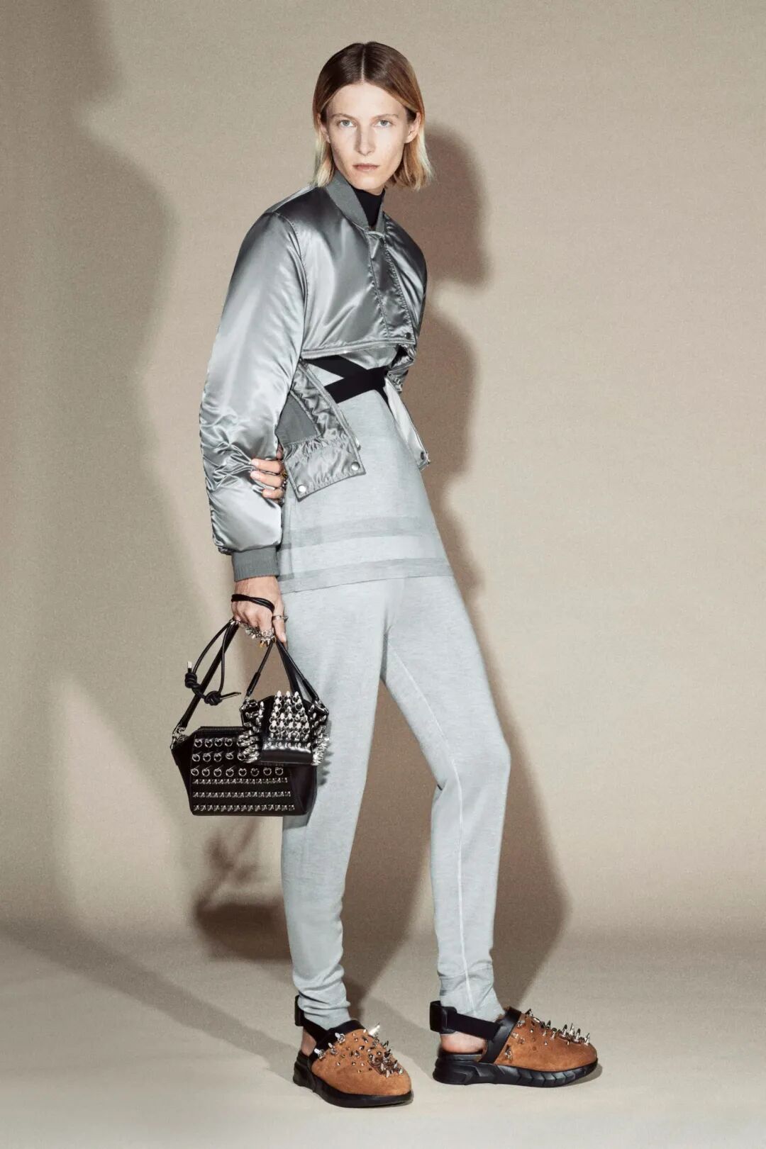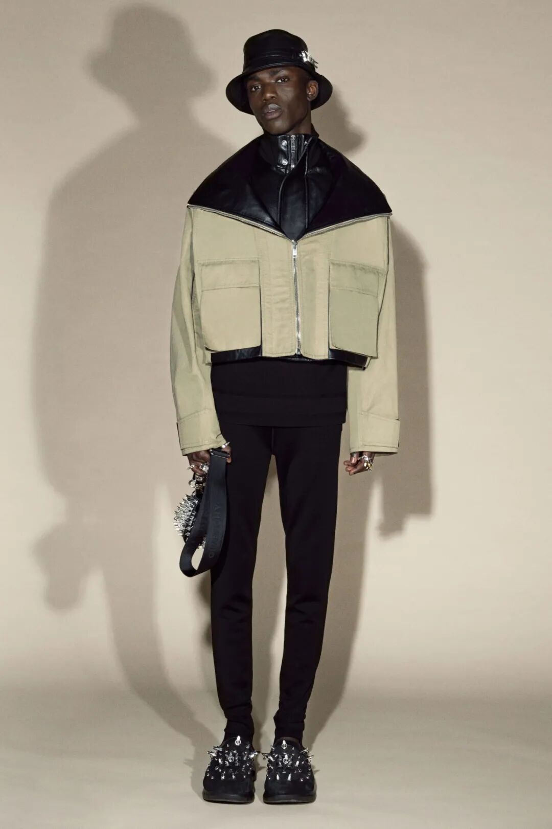 服饰的轮廓依旧延续硬挺不羁的风格。我们可以看到MA1飞行夹克回归,以及能拉长身线的博莱罗夹克融入了MMW个人风格的未来感。