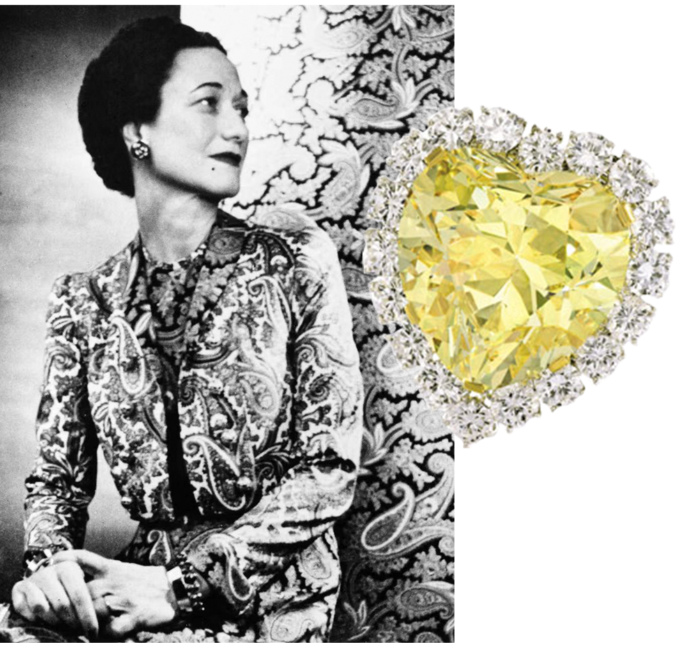 被称为“世界上拥有珠宝最多的女人之一”的温莎公爵夫人曾多次购入海瑞温斯顿以丰富个人收藏,其中就包括了著名的麦克兰之钻(McLean Diamond)。以及著名的“The Windsor Heart”,这颗在1951年被找到的93克拉无暇心形黄钻,被温莎夫人所钟爱。