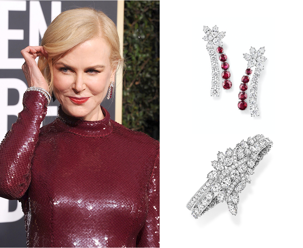 “自来水代言人”妮可·基德曼,在2021年奥斯卡颁奖礼上的招牌动作就是因为害怕碰坏手中,逾119克拉海瑞温斯顿高级珠宝。除此之外,在金球奖、演员工会典礼及其他重要时刻她也钟情于海瑞温斯顿。